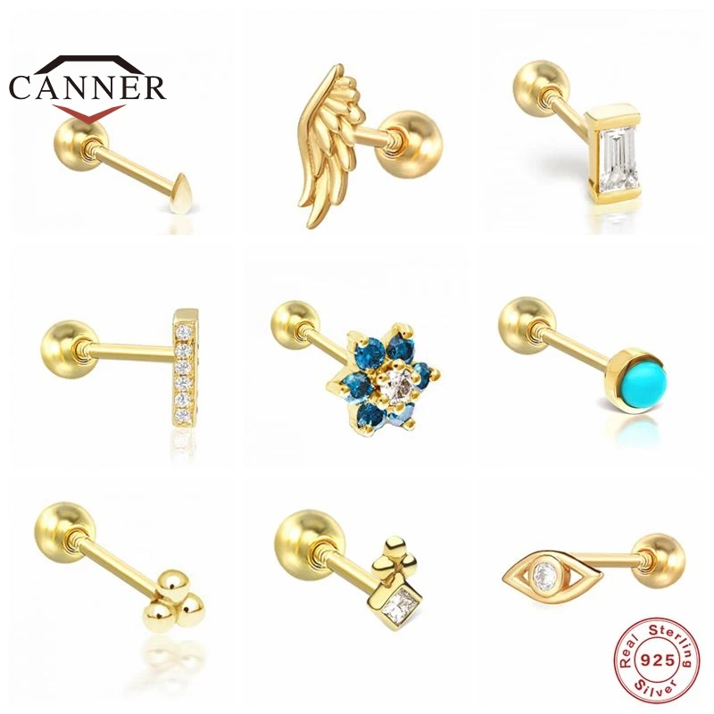Name: CANNER 1 pieza 925 de plata esterlina Stud Pendientes para las mujeres exquisito Piercing pendiente de plata 925 regalo de la joyería Pendientes de botón Pendientes