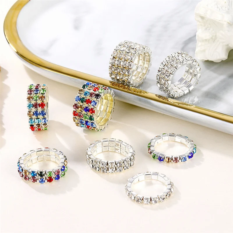 el 2020 chapados en plata de moda elástico anillos para las mujeres brillante estrás de cristal Multicolor anillo nupcial de la boda accesorios de la joyería fue aceptado. Yo uso Cainiao Super Economy y el paquete existe bueno.