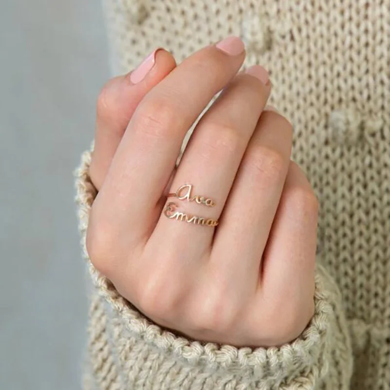 Name: Anillos de doble nombre personalizados para mujer, Color dorado, acero inoxidable, placa con nombre personalizada, anillo de boda, regalo de joyería