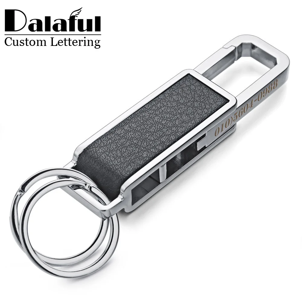Llaveros Dalaful con grabado personalizado, hebilla metálica de cuero para la cintura, herramienta giratoria para abrir botellas, llaveros, soporte para anillo, K354 llegó después de 16 días, se parece a las piezas originales, gracias